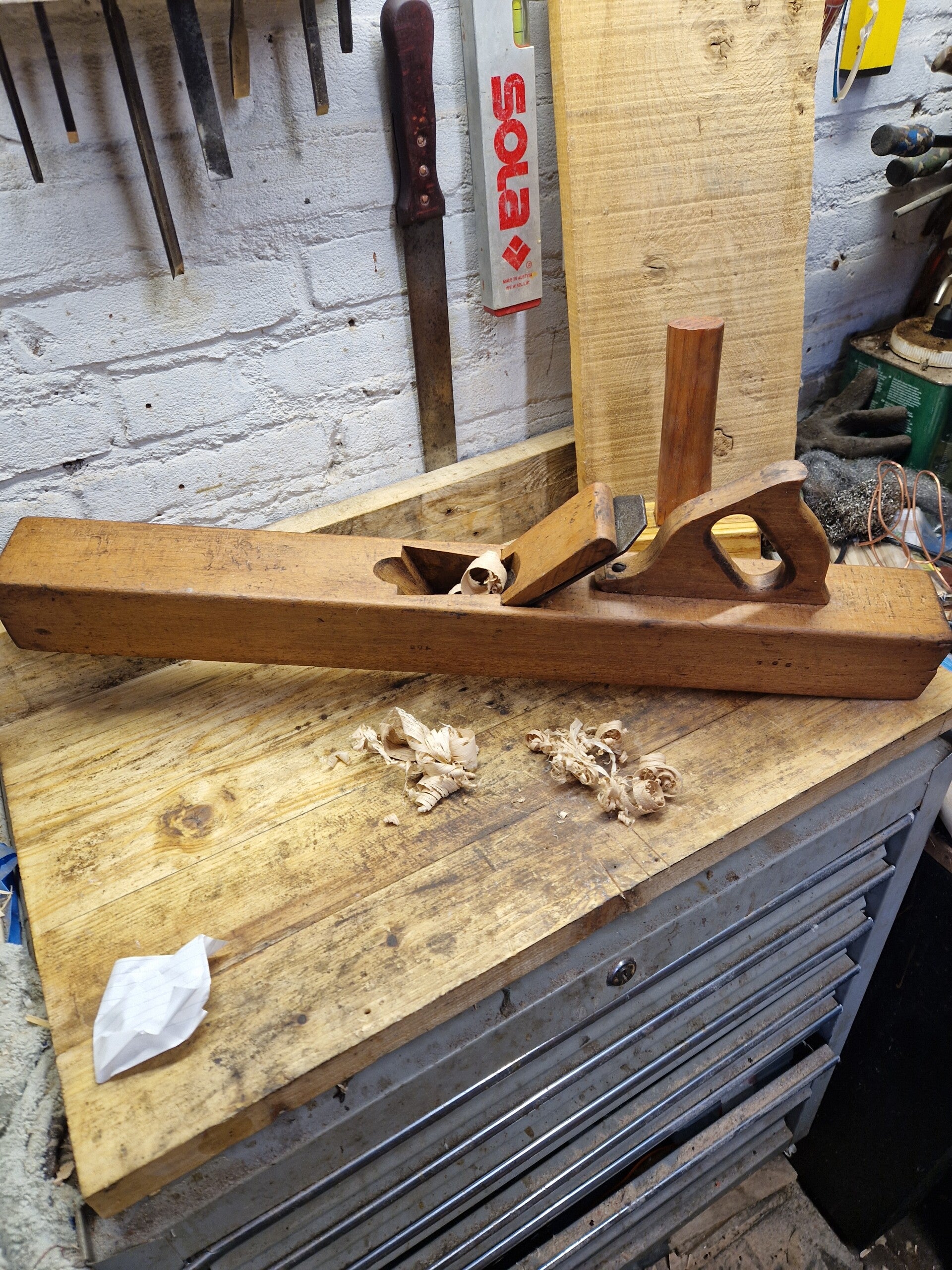 eigenschappen van deze schaaf zijn de orginelen nummers in het blok en wig namenlijk 106 en op het kop van het blok 56